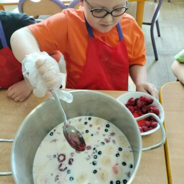 przygotowały jogurt owocowy.