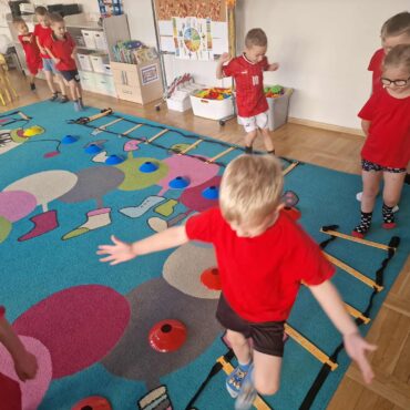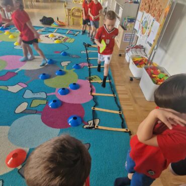 Na tych zajęciach dzieci, pod opieką Trenera z Klubu Juniora Różanki,