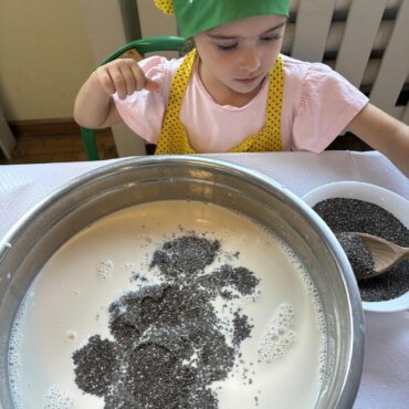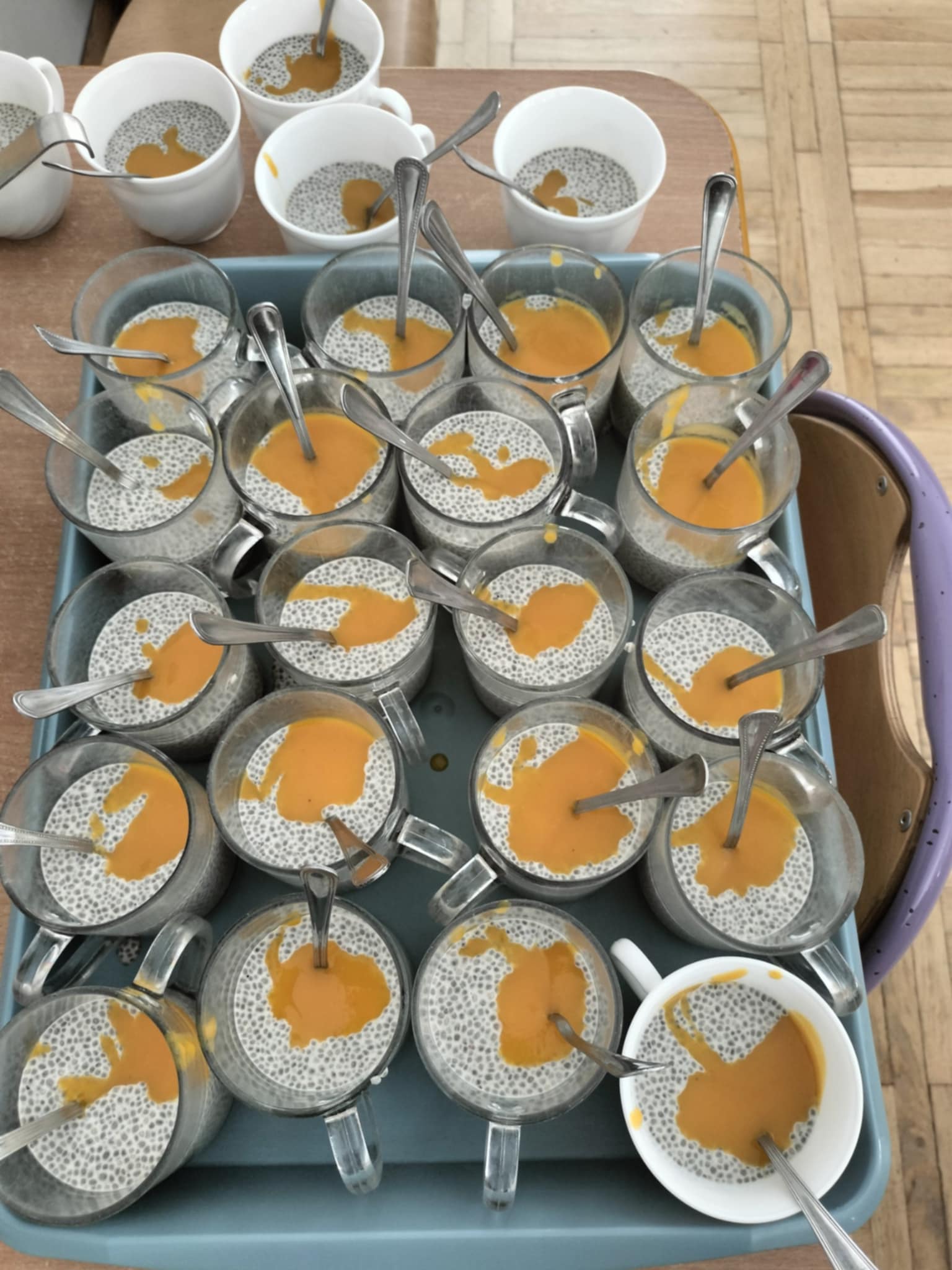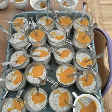 użyły mleka roślinnego, nasion chia oraz musu mango.