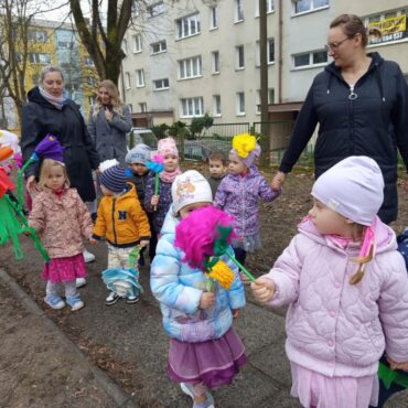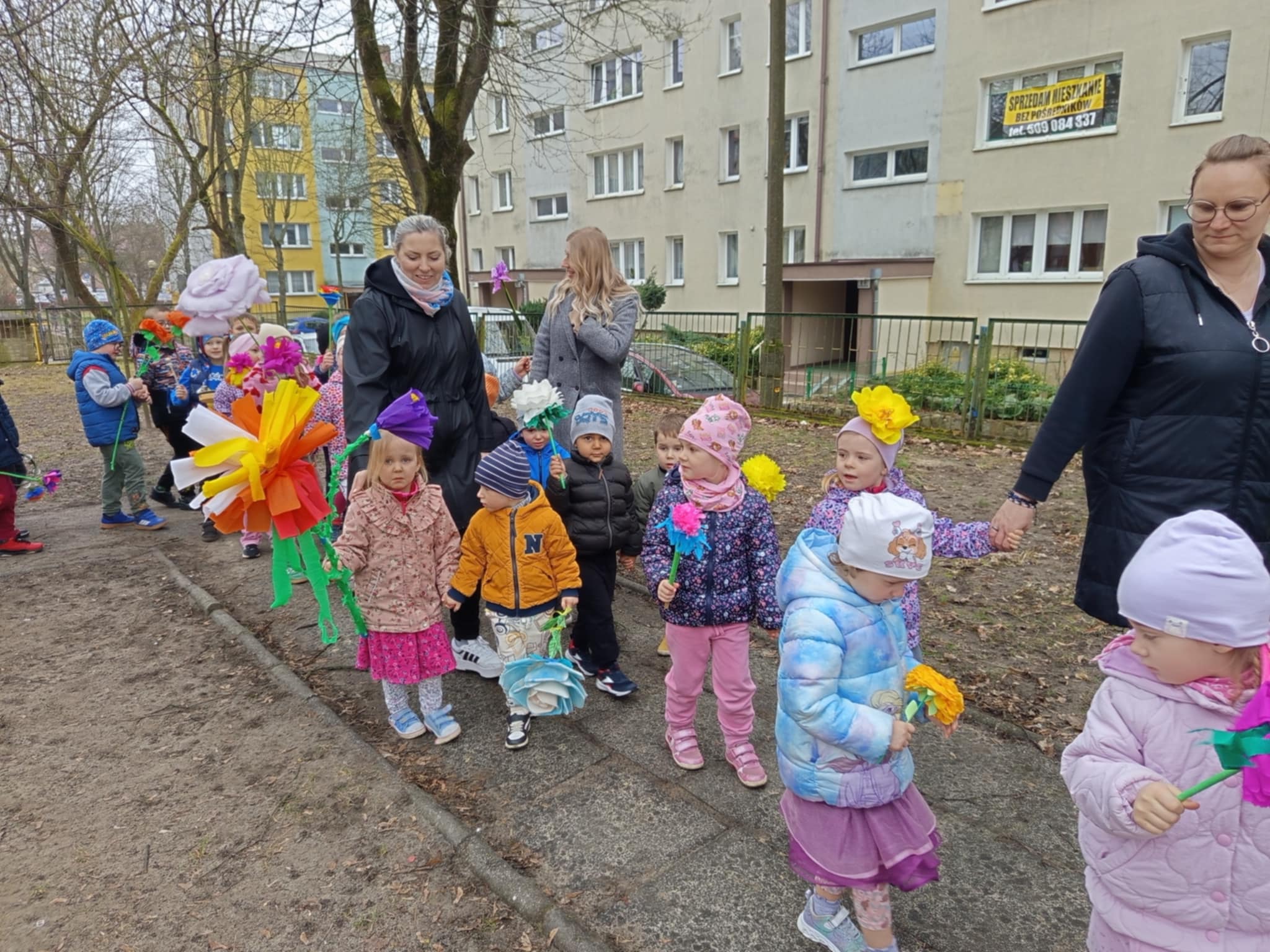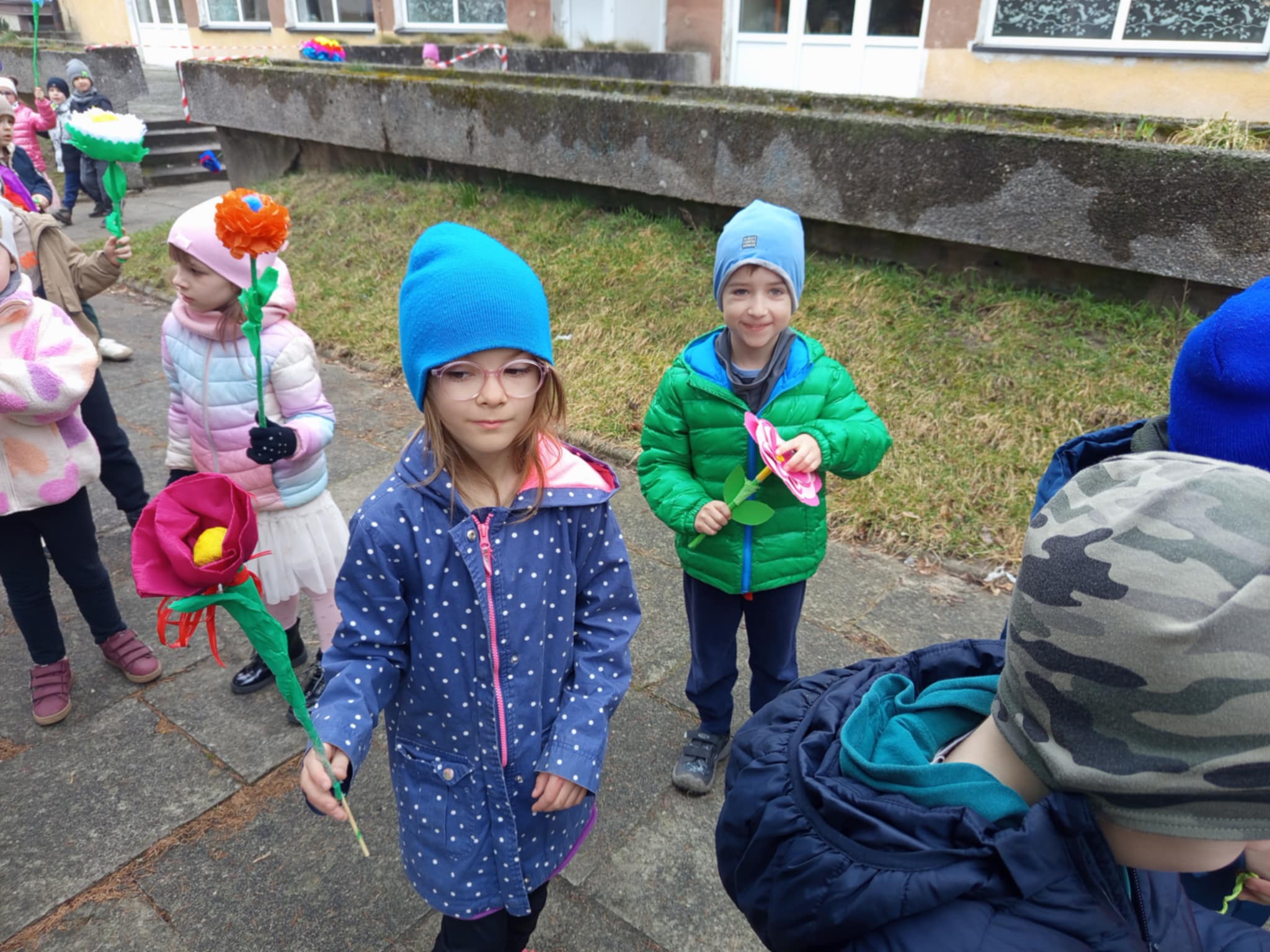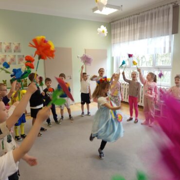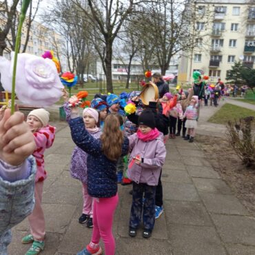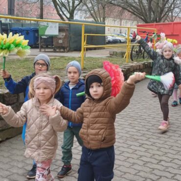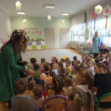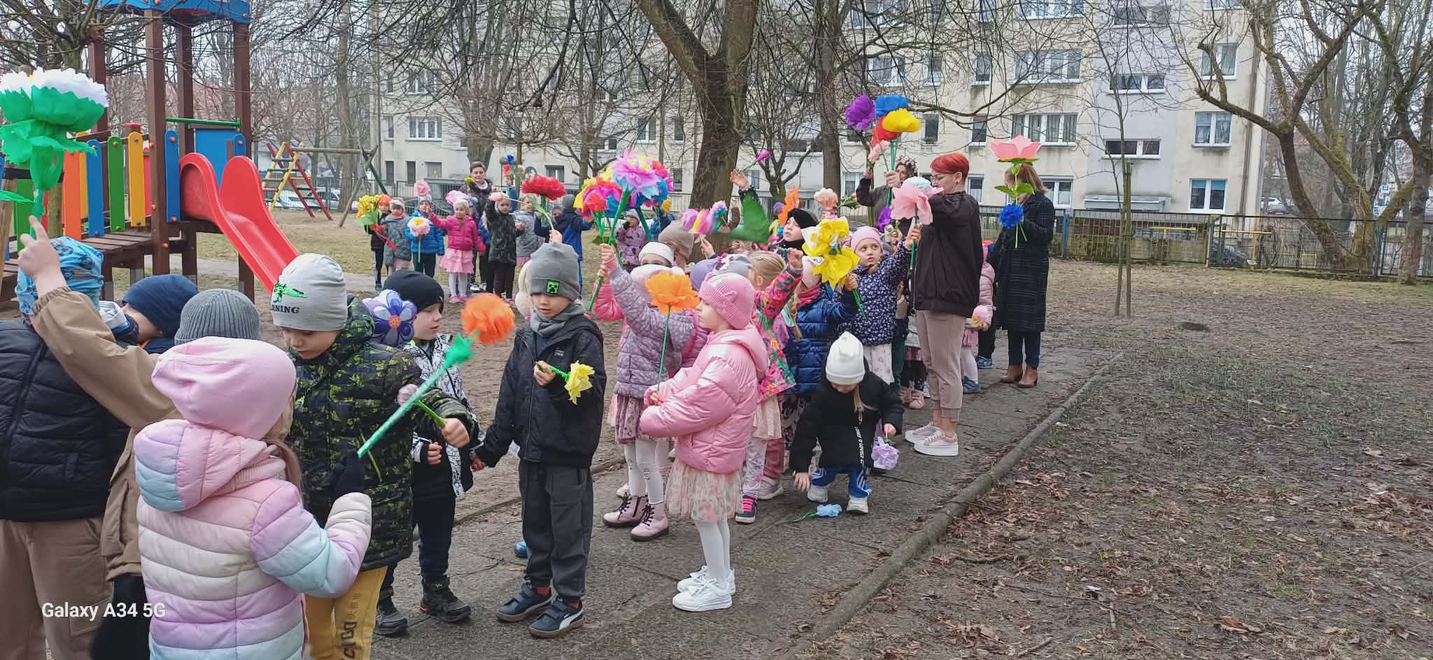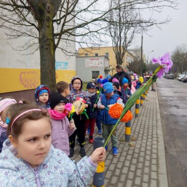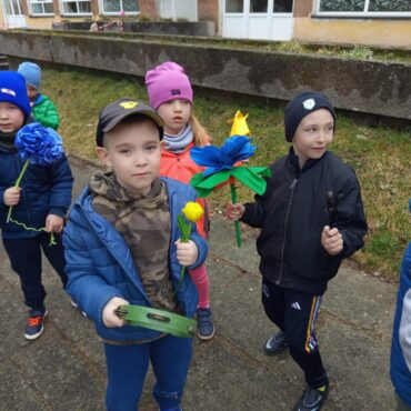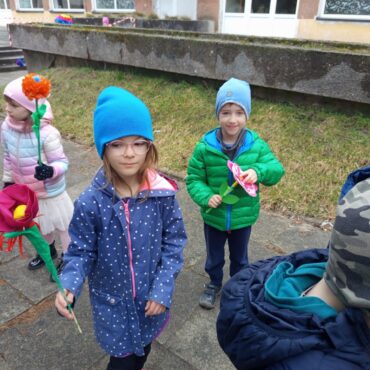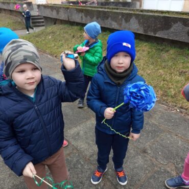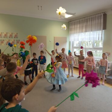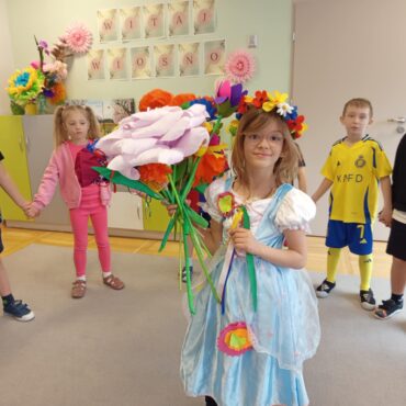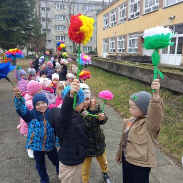 Każde dziecko przyniosło własnoręcznie wykonany w domu kwiat,