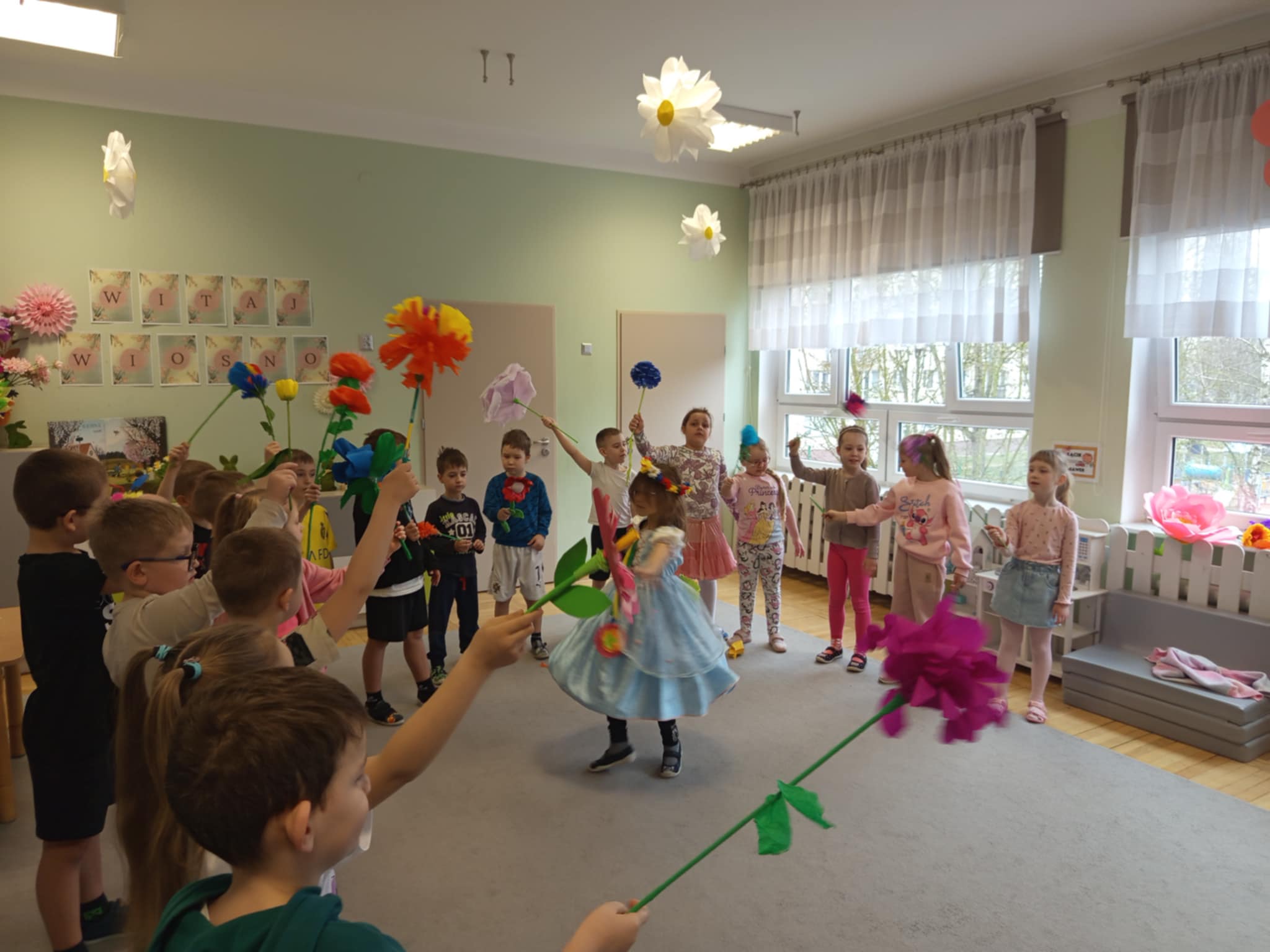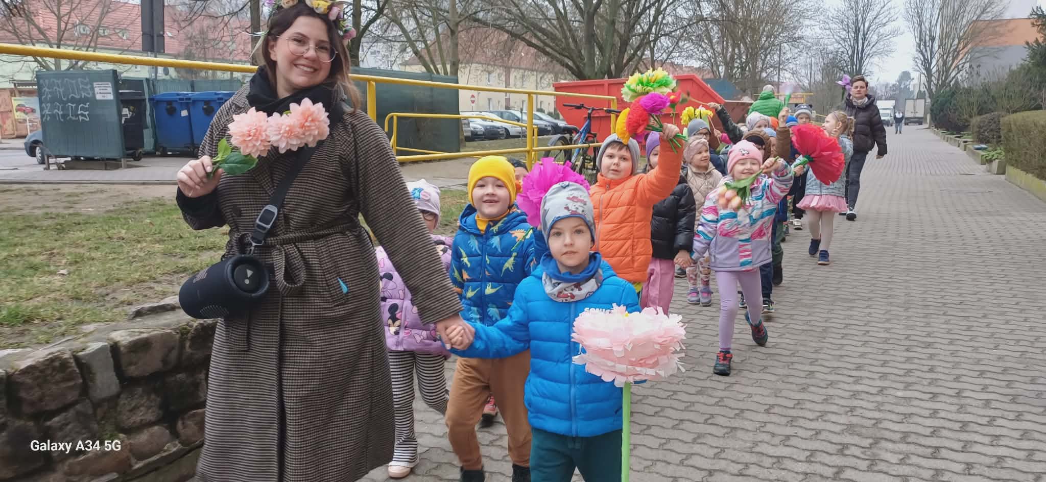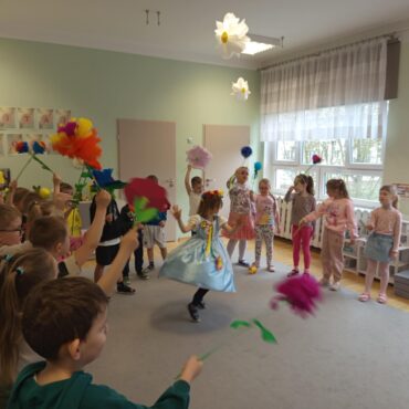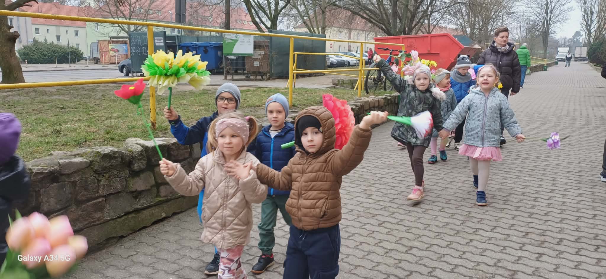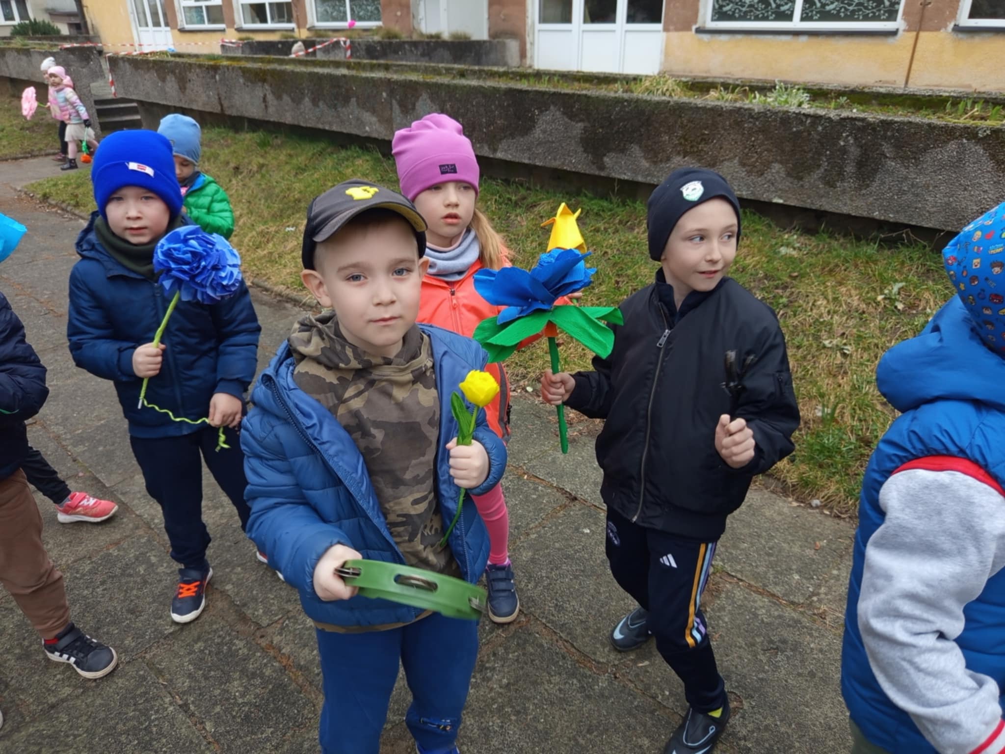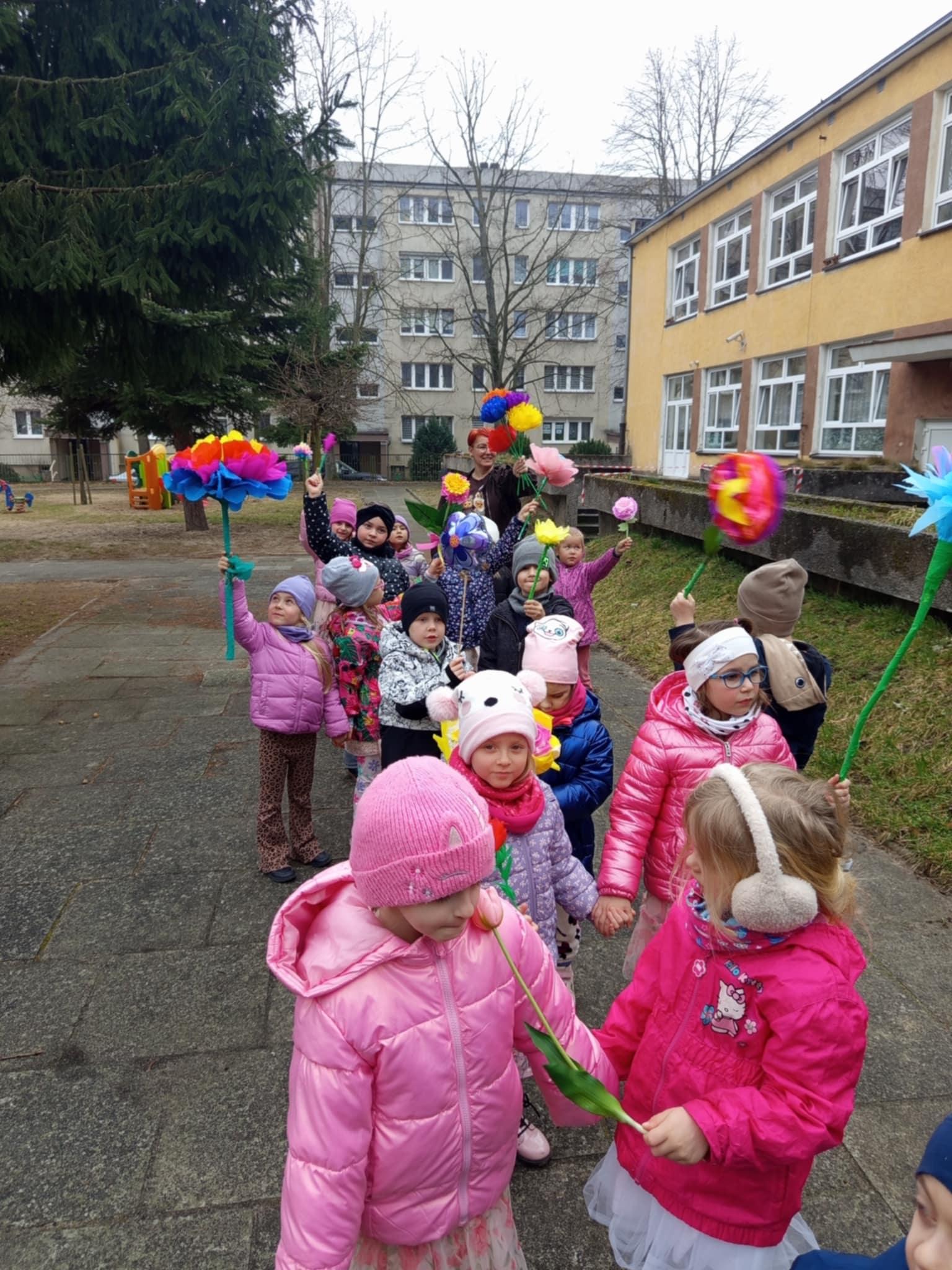 Każde dziecko przyniosło własnoręcznie wykonany w domu kwiat,