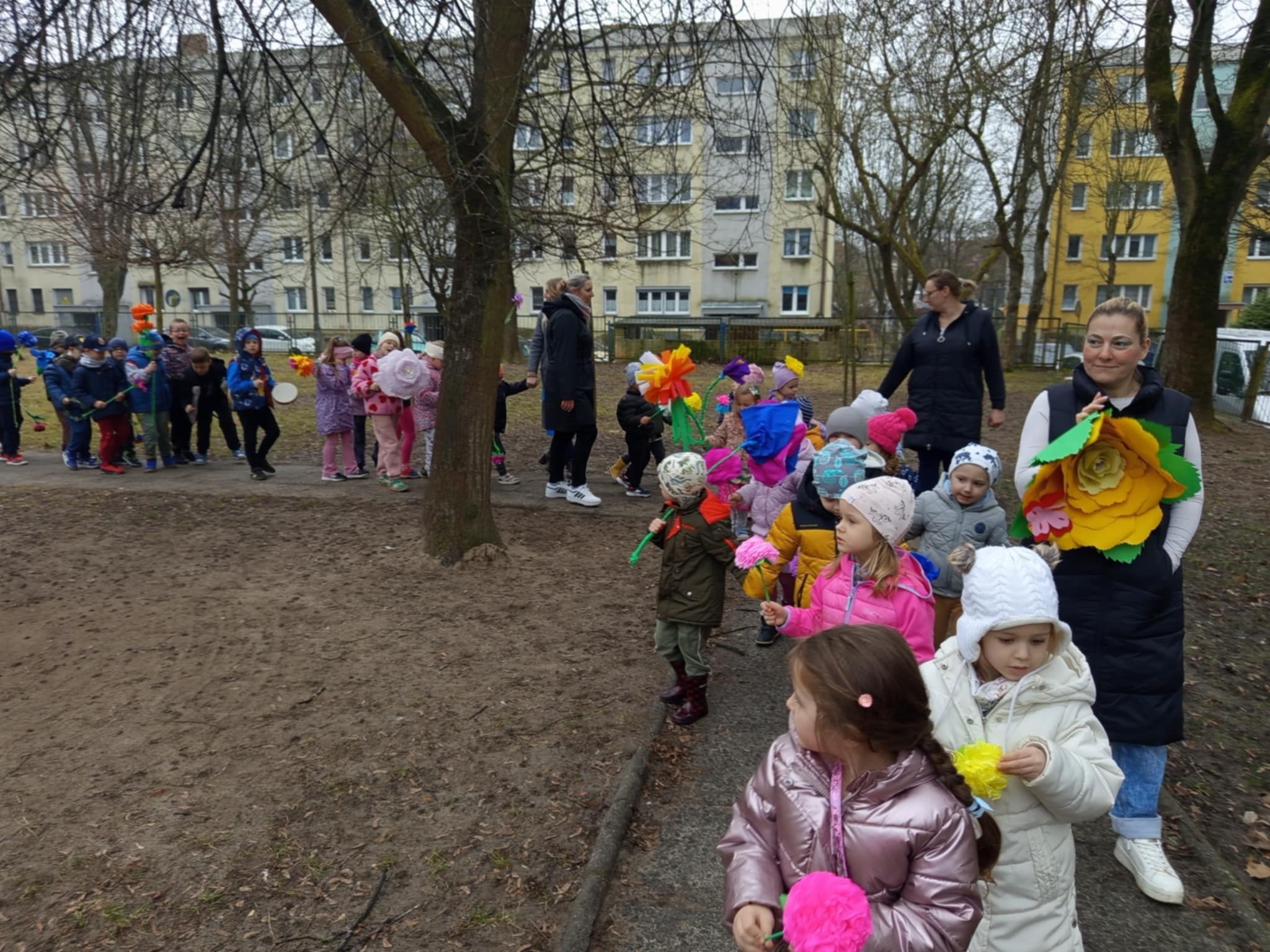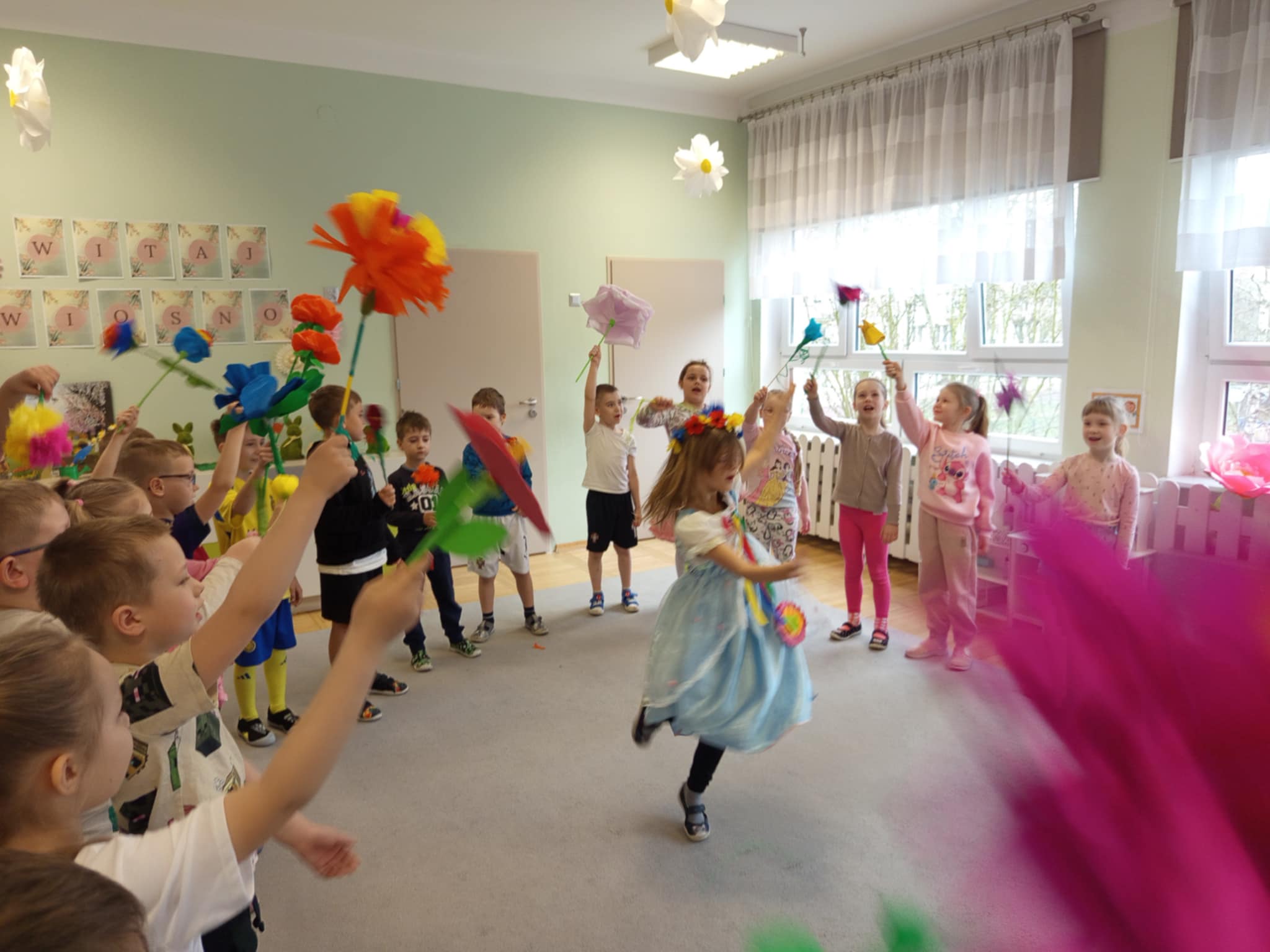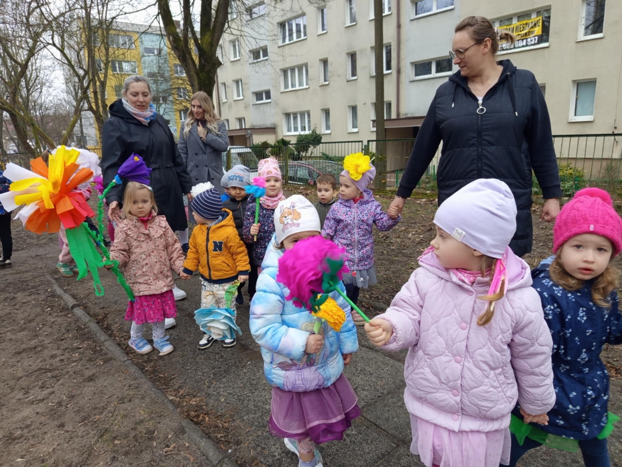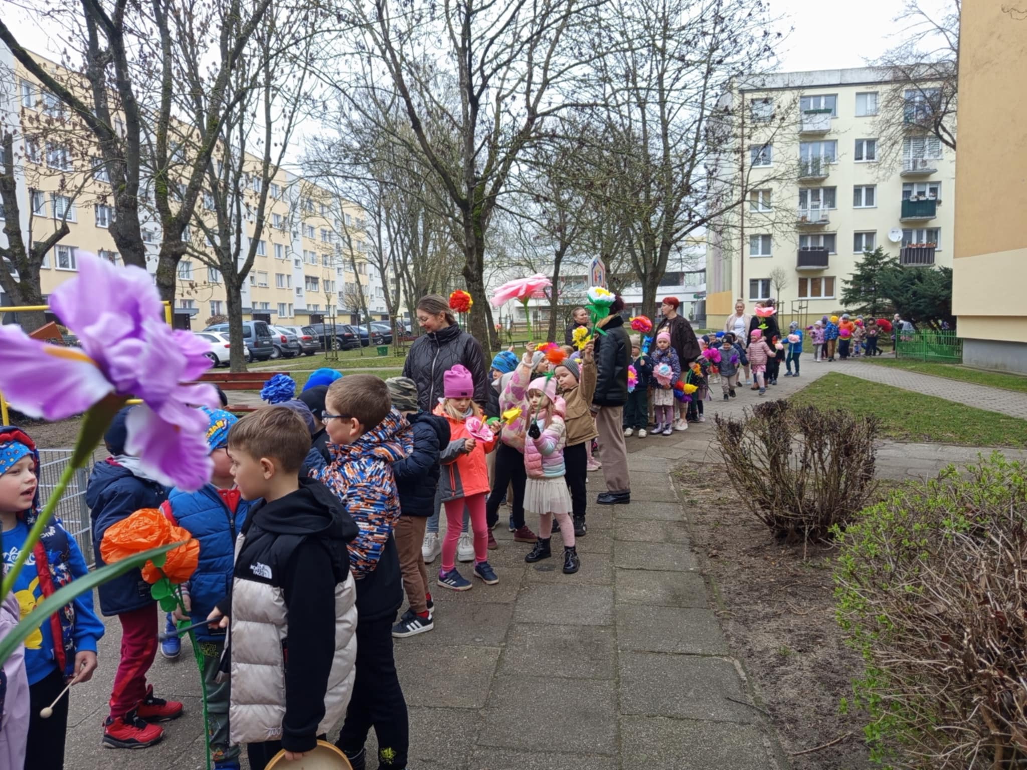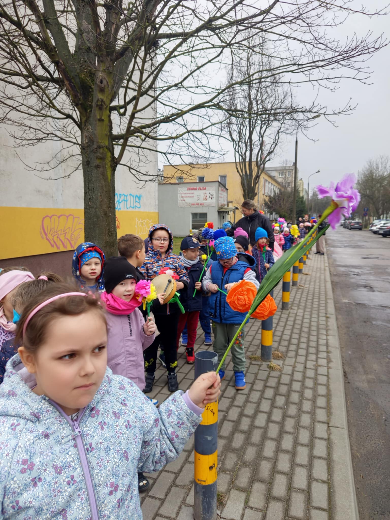 Każde dziecko przyniosło własnoręcznie wykonany w domu kwiat,