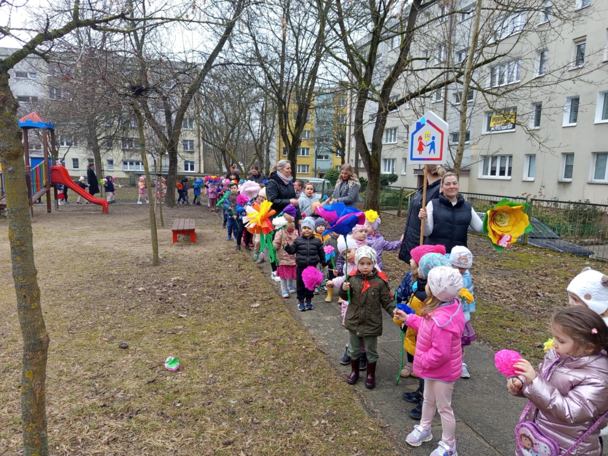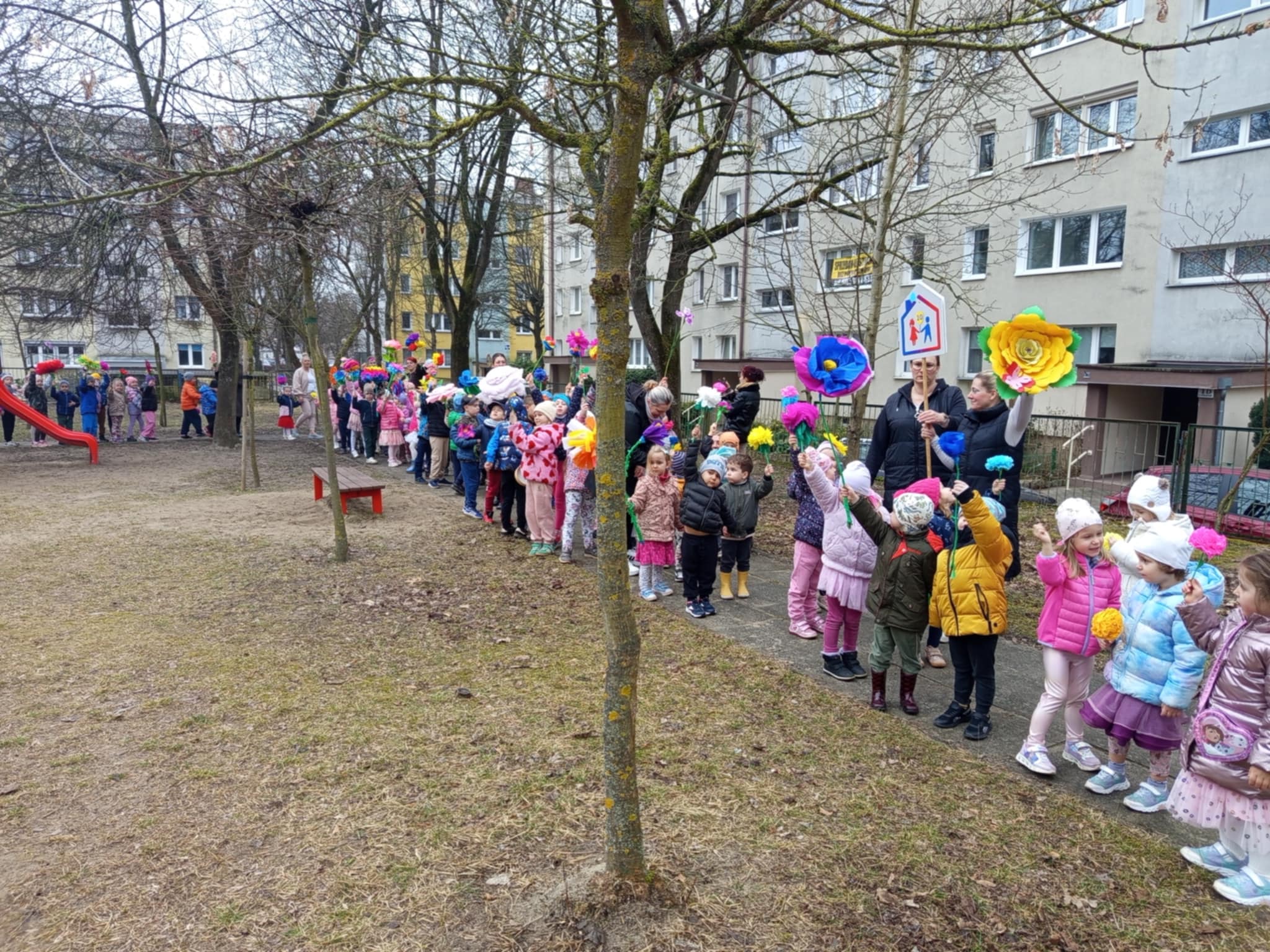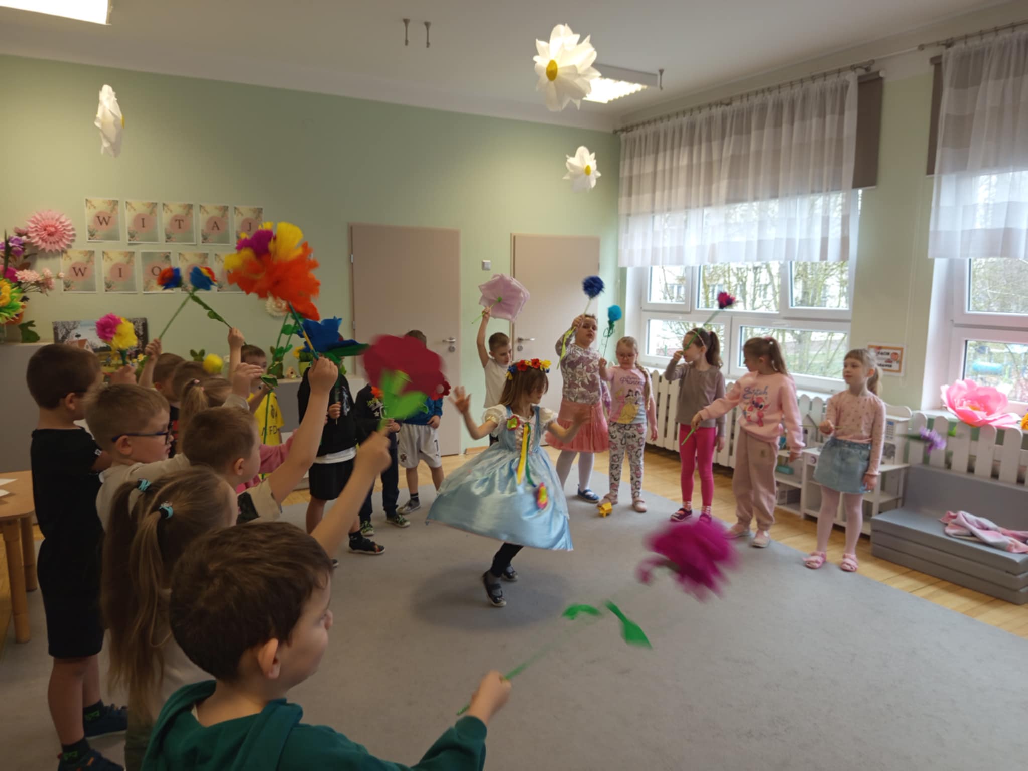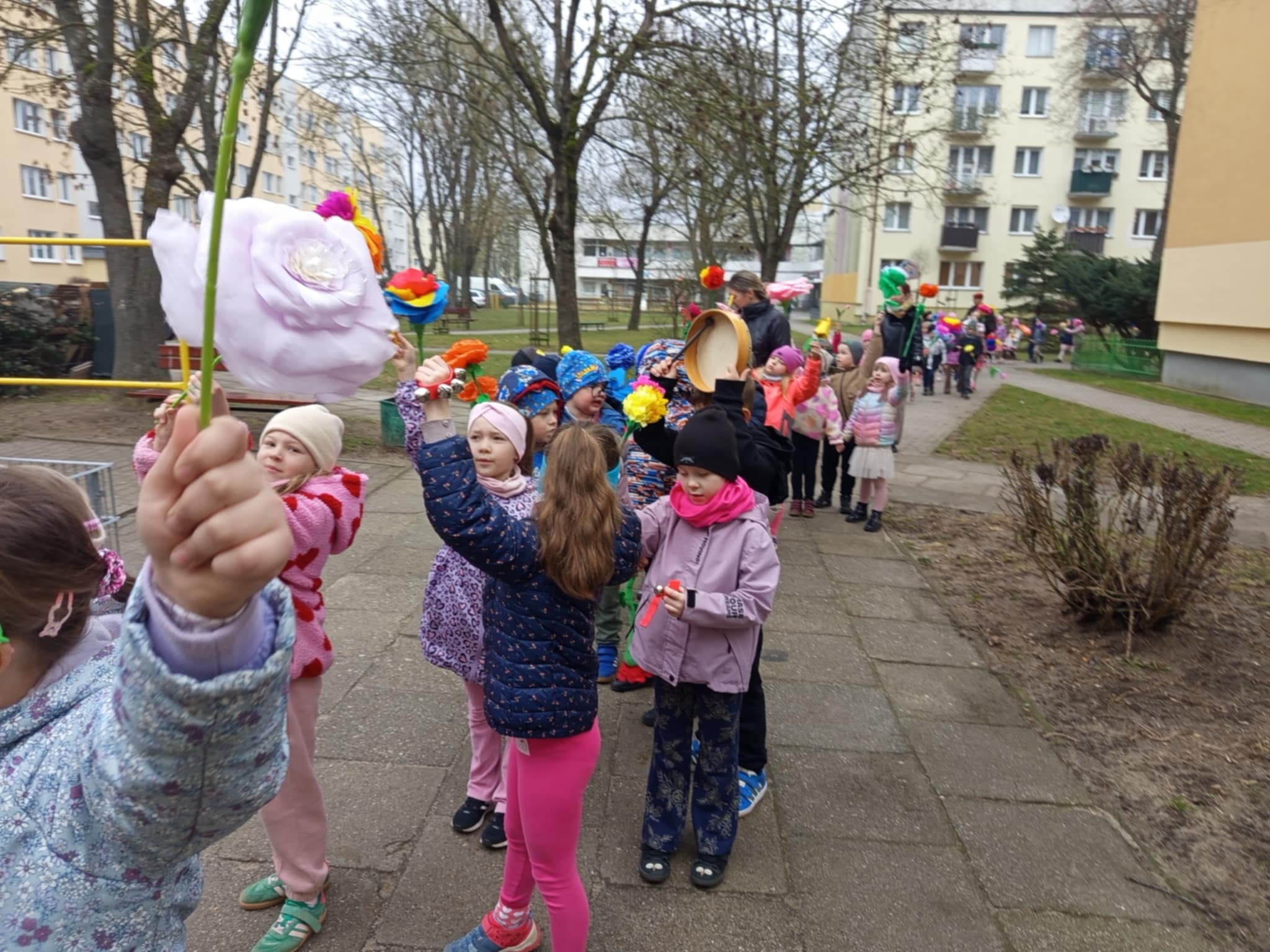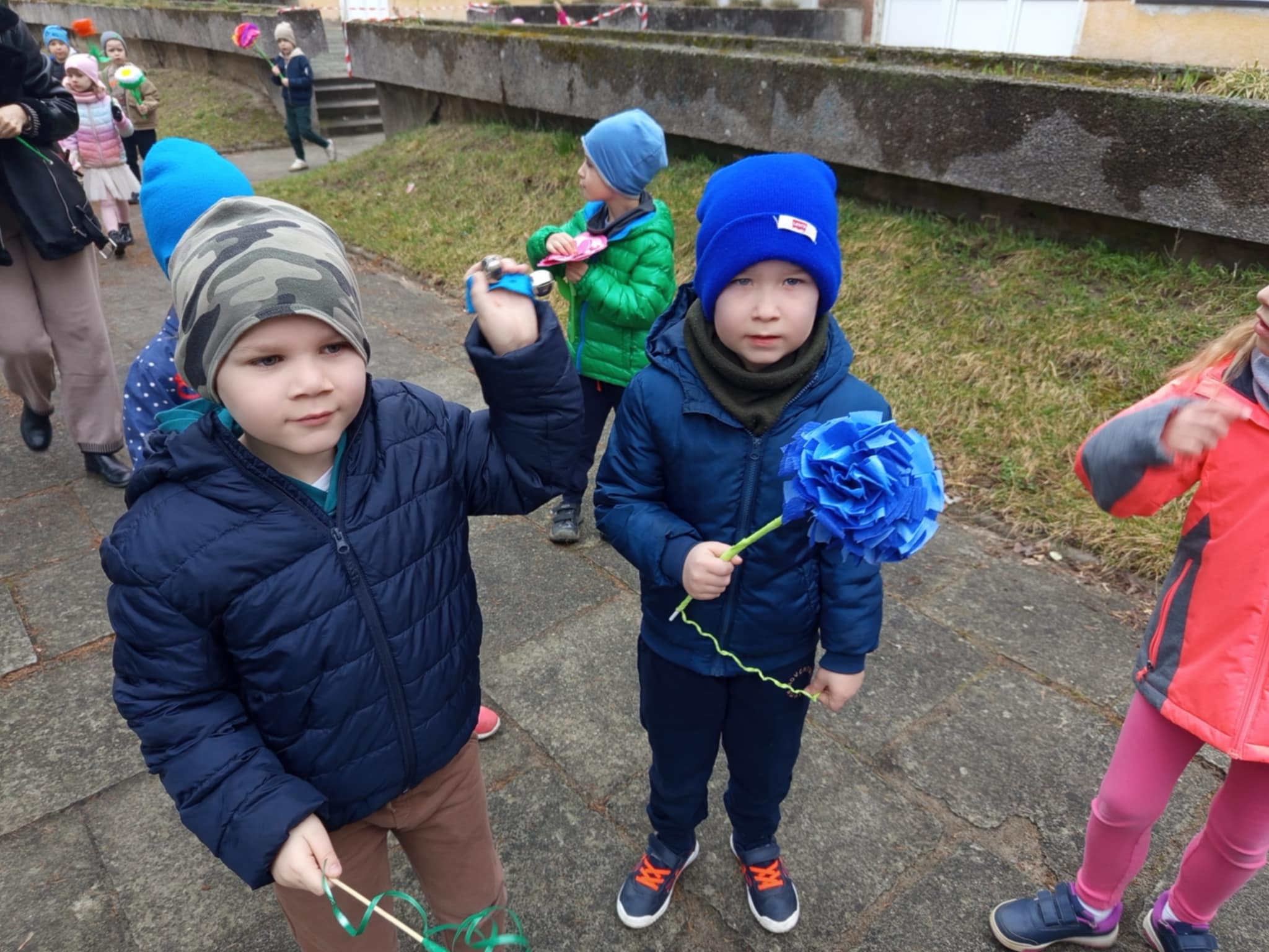 Każde dziecko przyniosło własnoręcznie wykonany w domu kwiat,