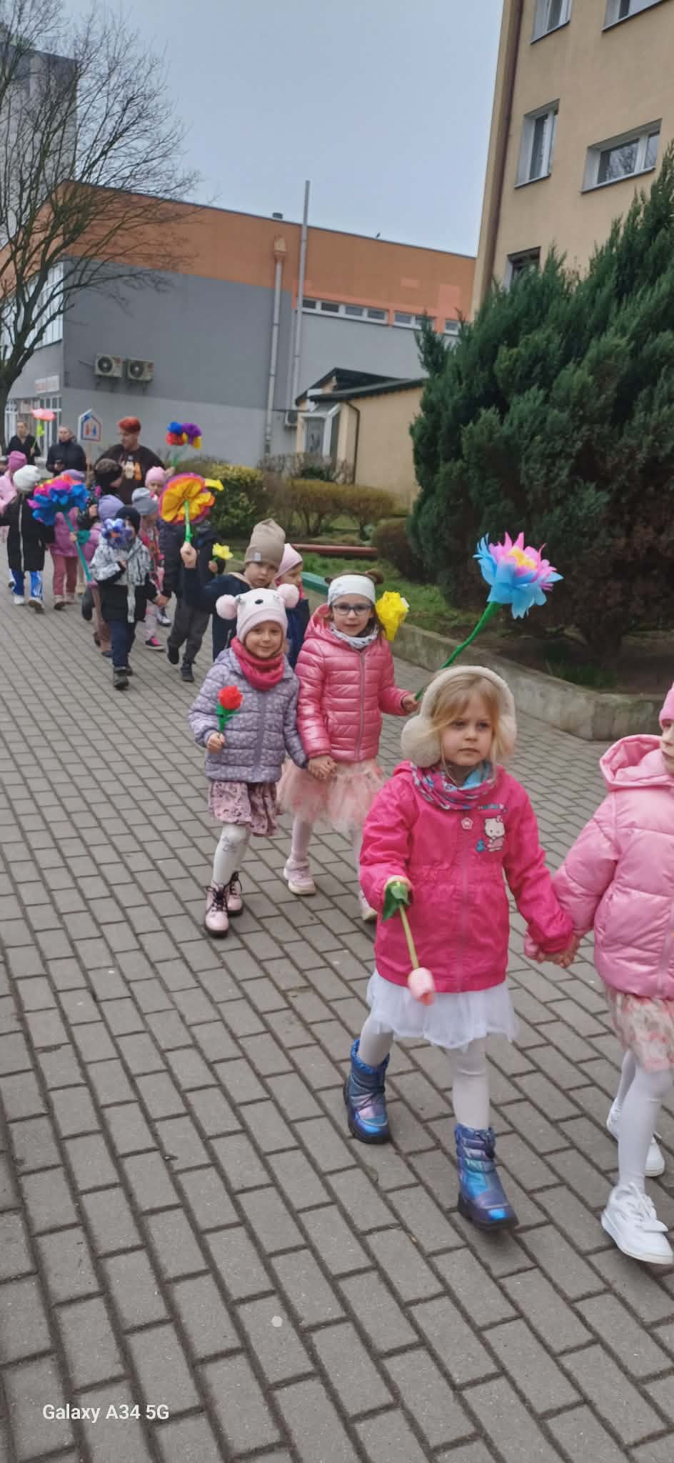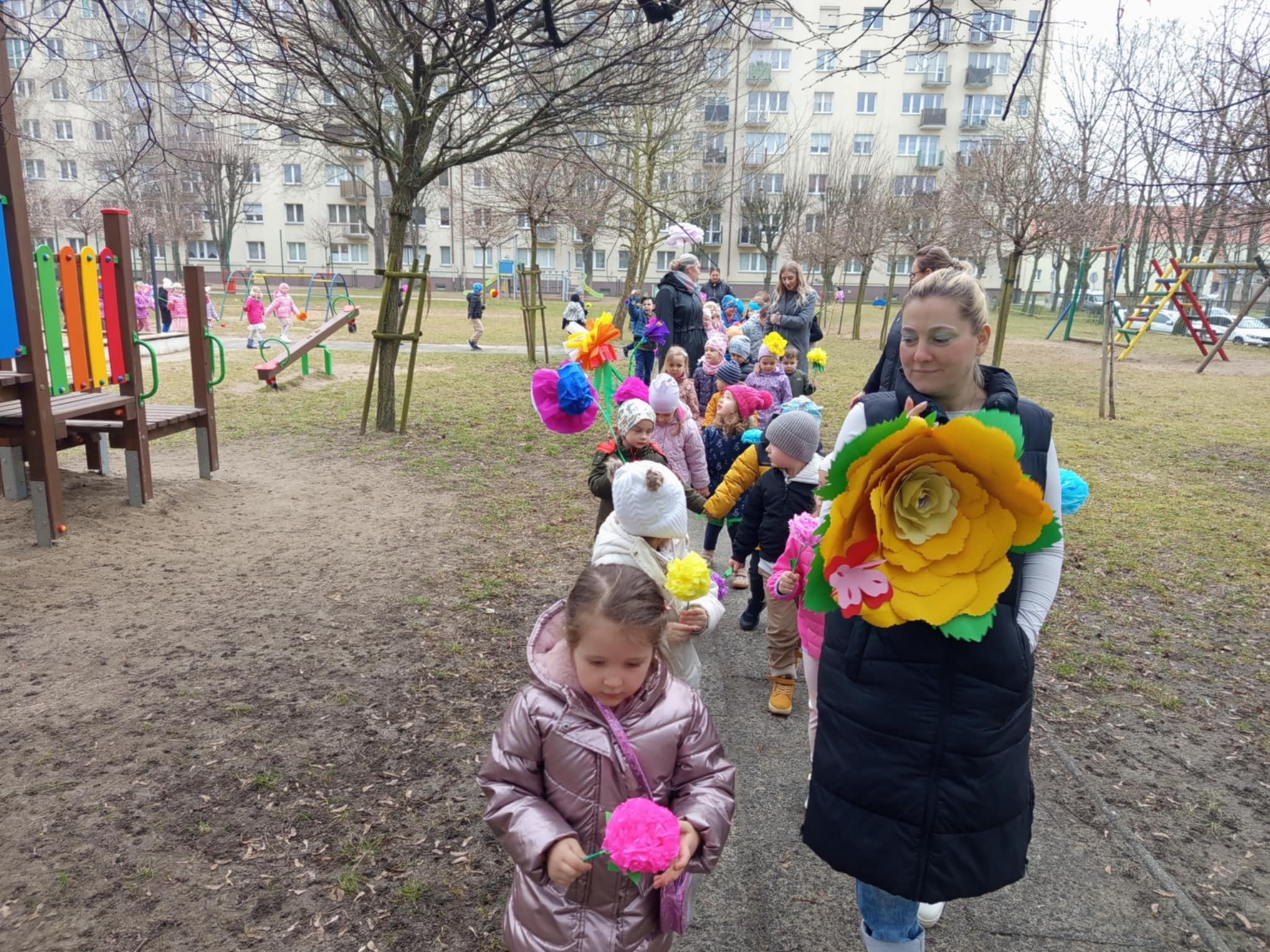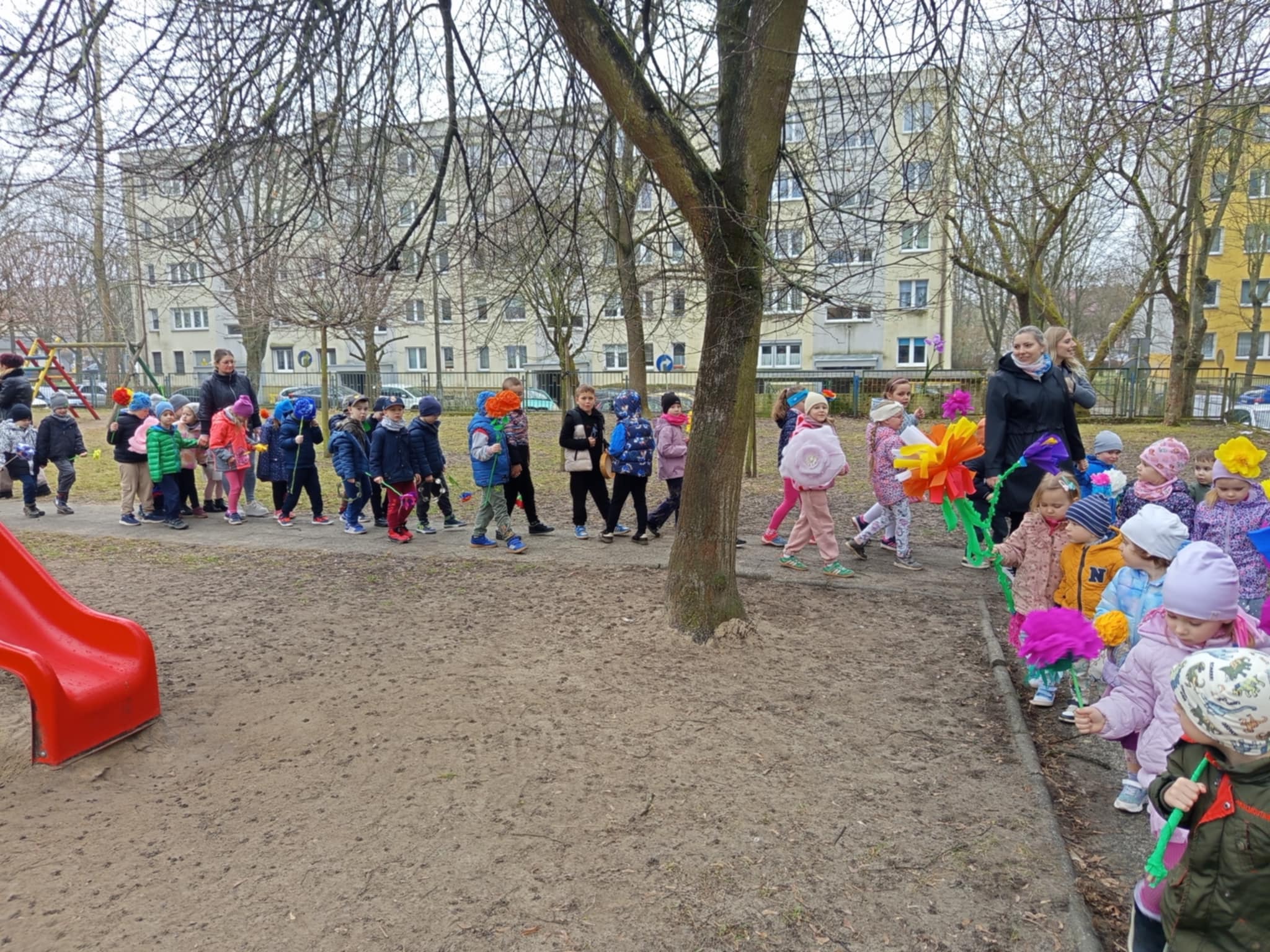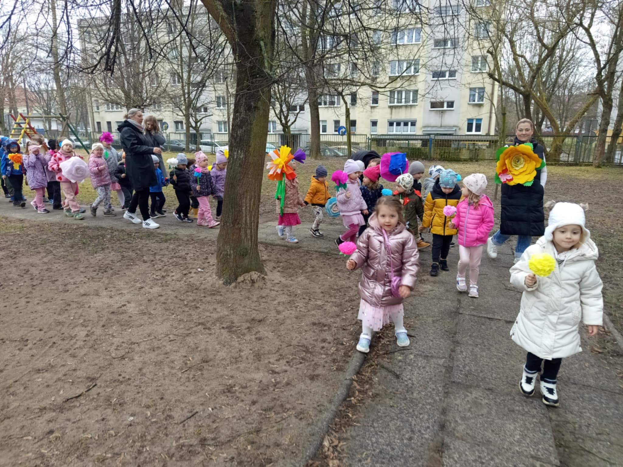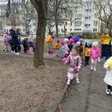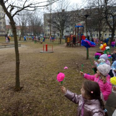 Każde dziecko przyniosło własnoręcznie wykonany w domu kwiat,