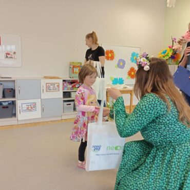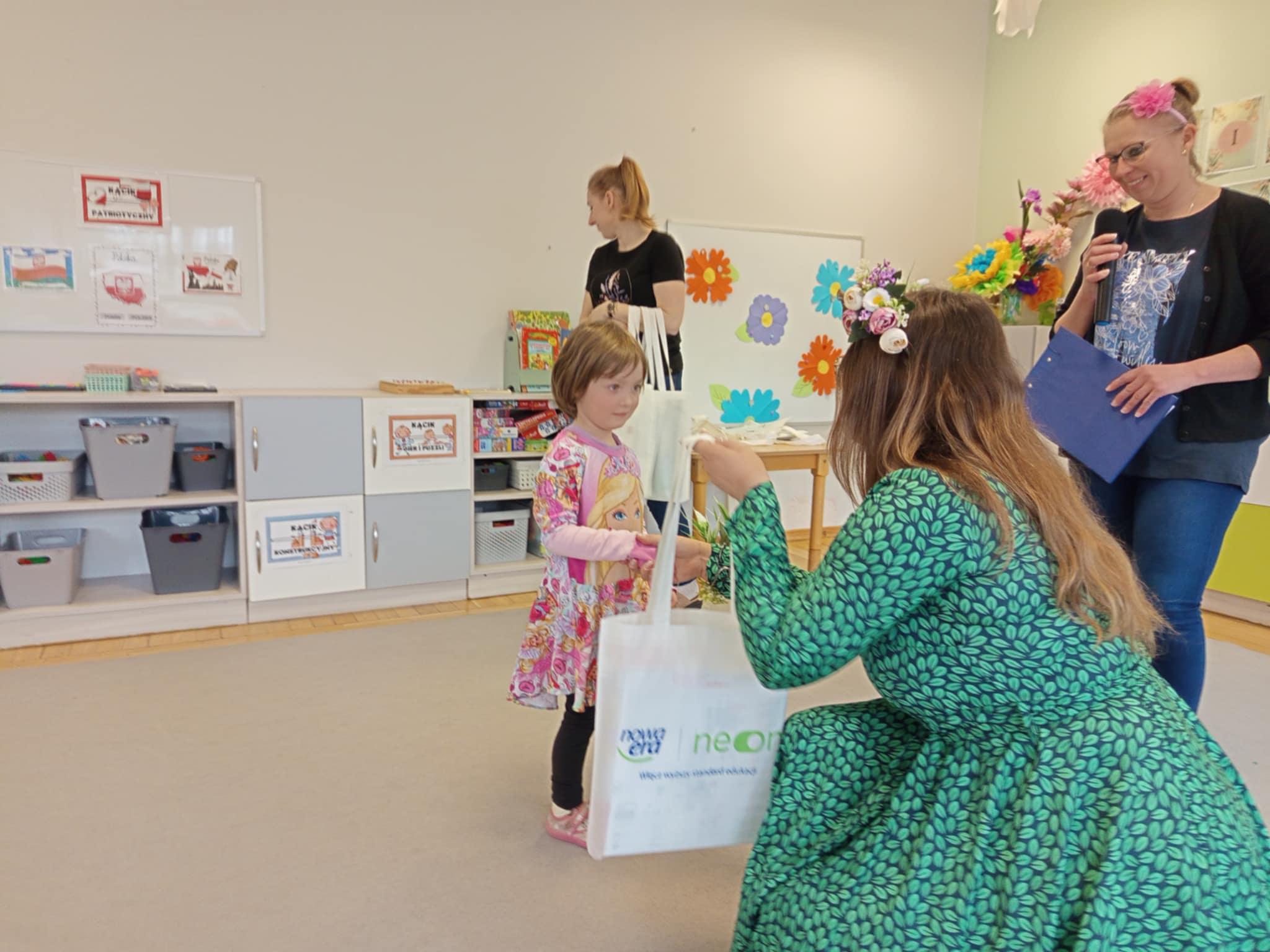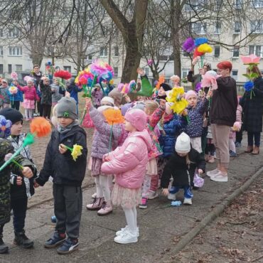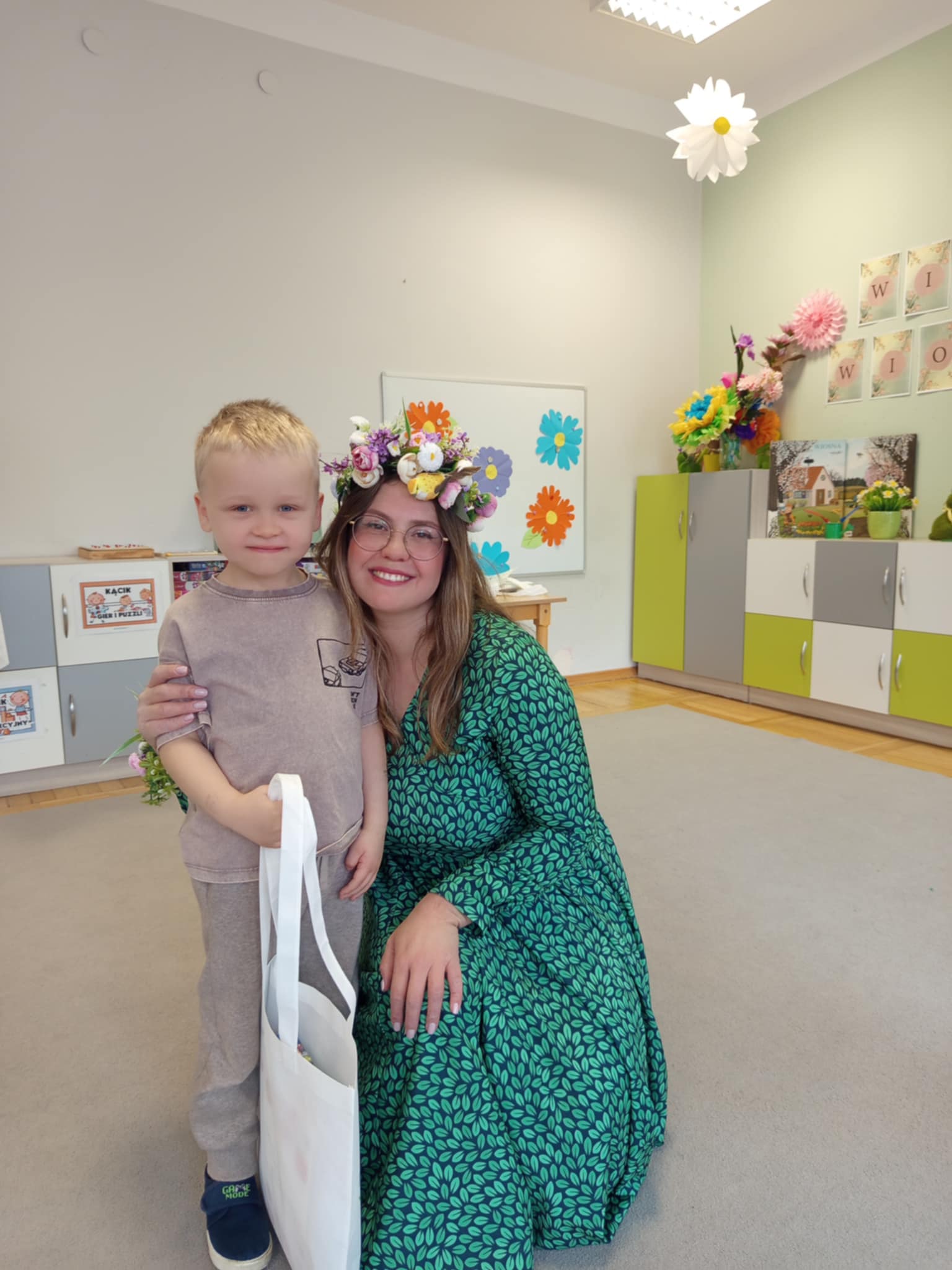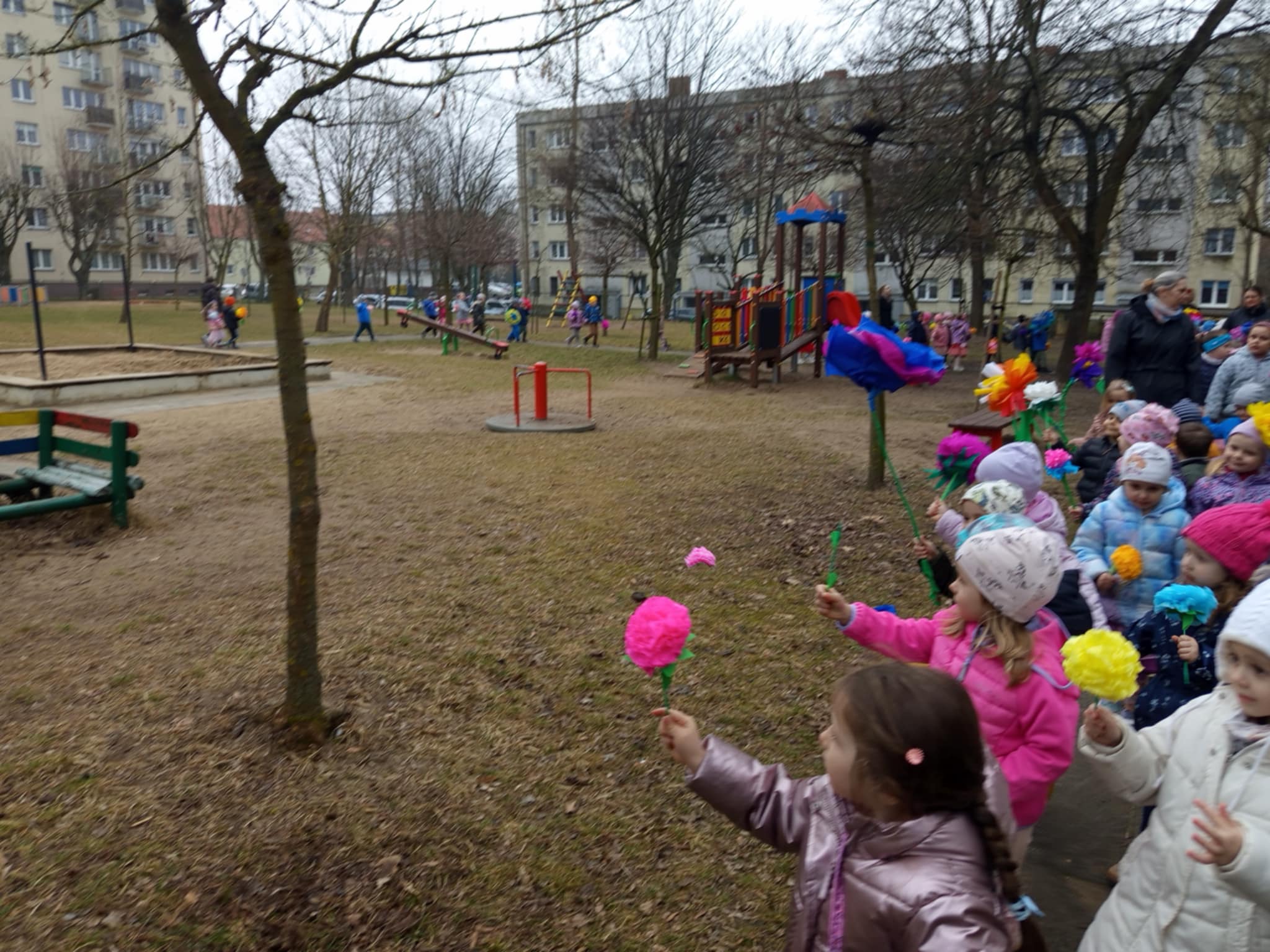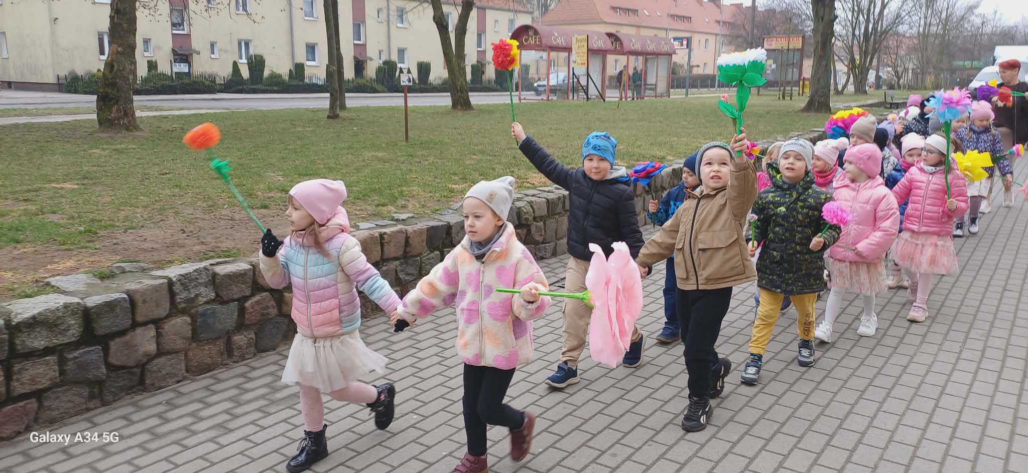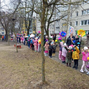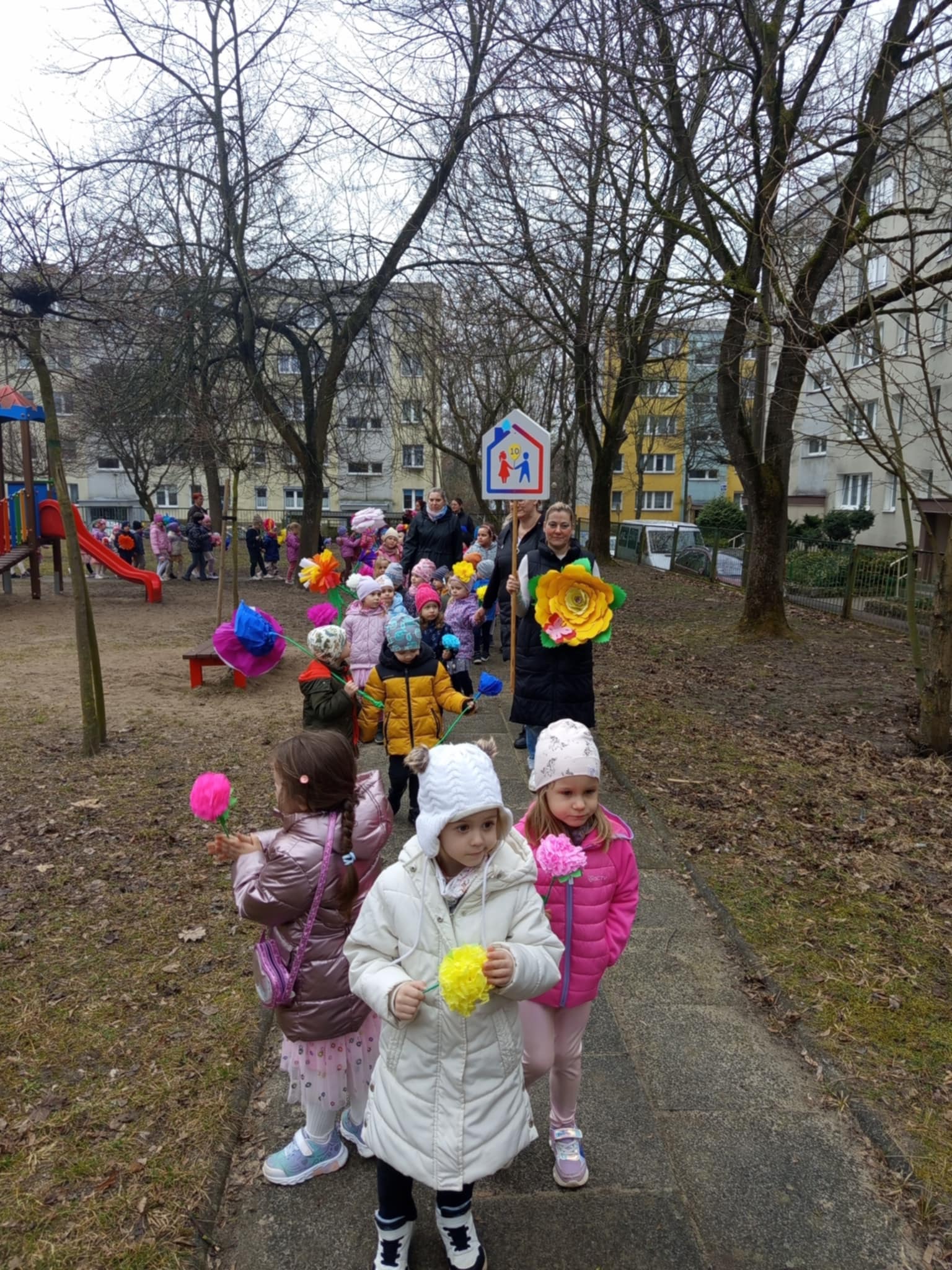 Każde dziecko przyniosło własnoręcznie wykonany w domu kwiat,