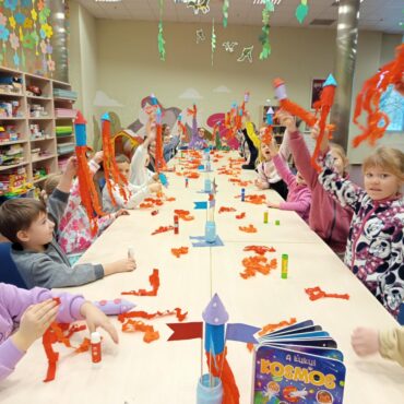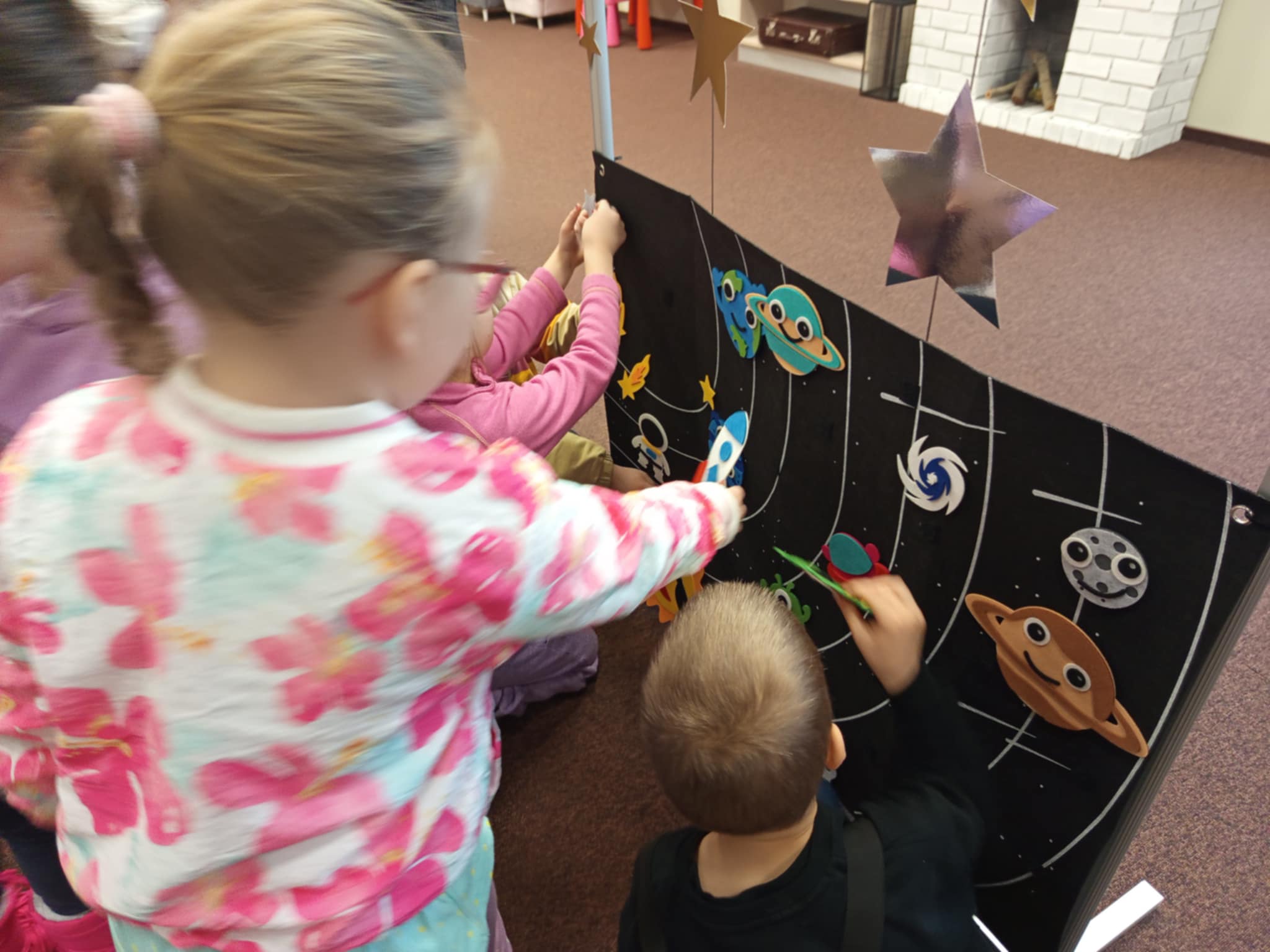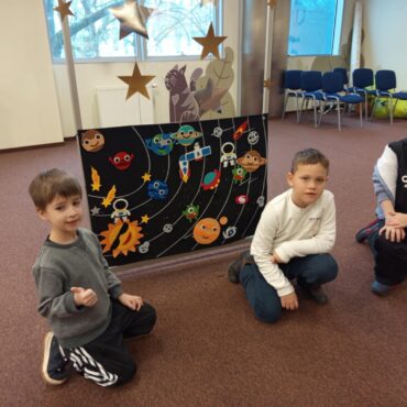 zabawach z planetami oraz zadaniach rozwijających wyobraźnię.