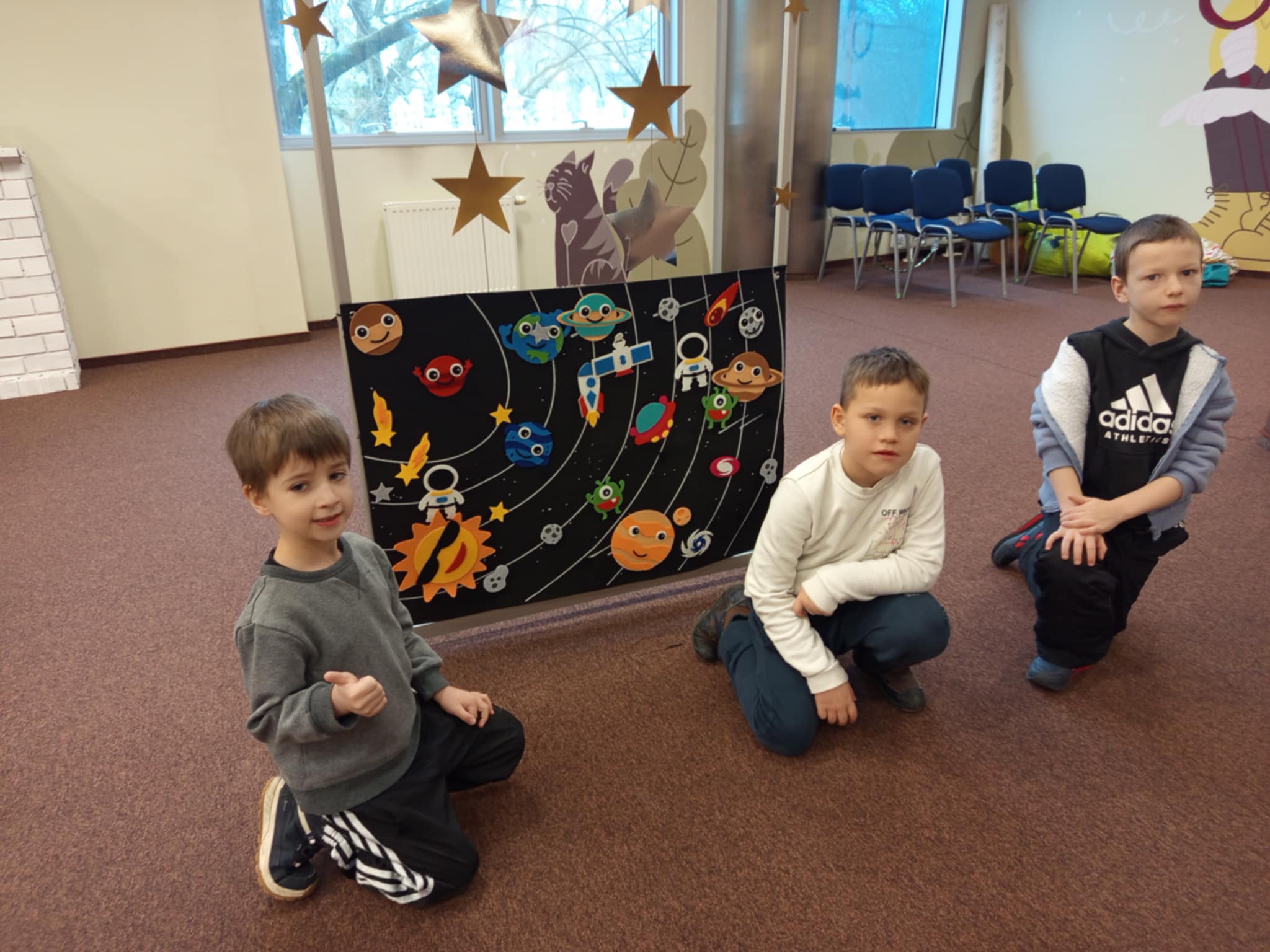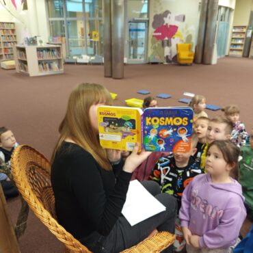 Podczas spotkania dzieci z ogromnym zainteresowaniem wysłuchały książki o kosmosie,